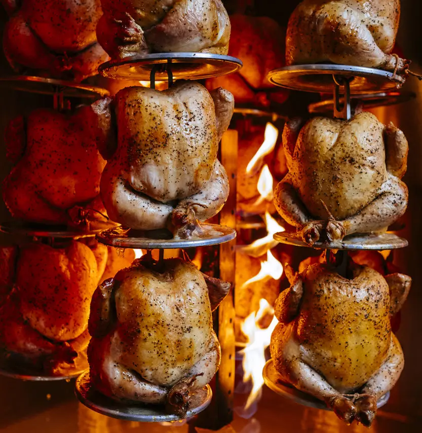 فرن شواية الدجاج التجاري الموفر للمساحة هذا مثالي لمتاجر البقالة ومؤسسات كبار السن وأي مكان يحتاج إلى إنتاجية عالية دون التضحية بالنكهة.