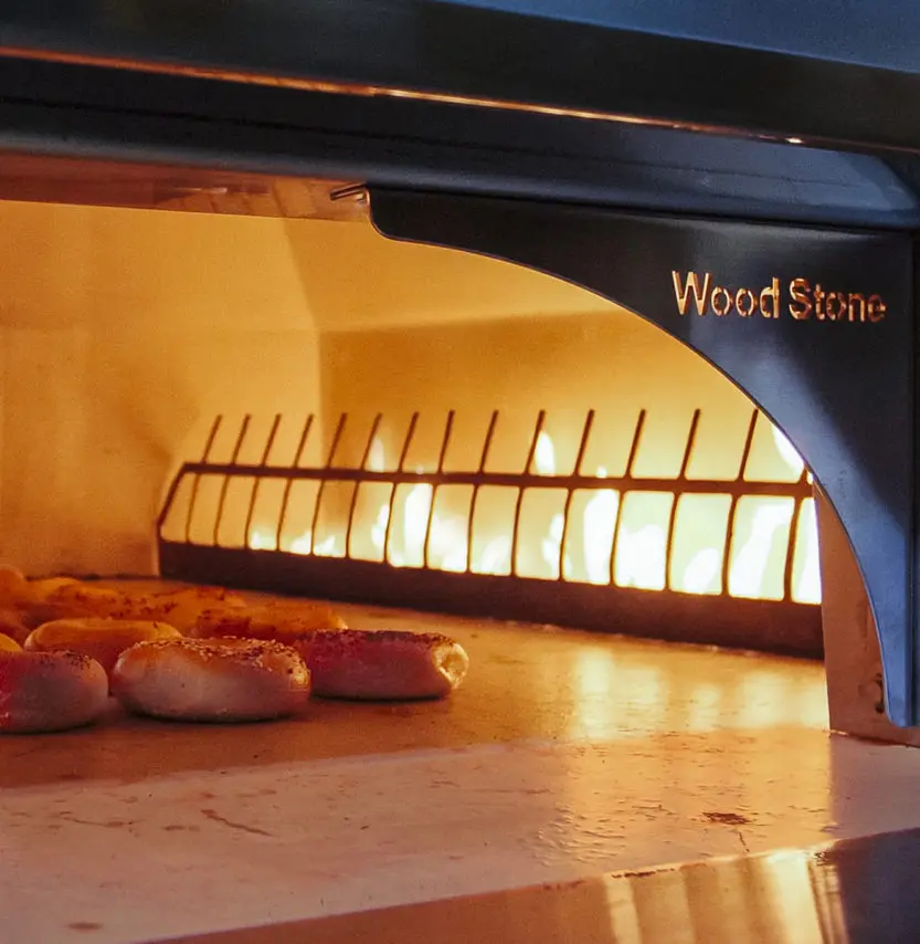 If your operation requires a large amount of cooking space without sacrificing power and reliability, check out Wood Stone’s Bagel Oven (90112) – the world’s largest manufactured stone hearth oven. Designed as a high production bagel oven, the Fire Deck 90-112 has 45 square feet of cooking surface – enough to produce 450-500 5-inch bagels an hour! Featuring three radiant flame burners and an underfloor infrared burner, the Wood Stone Bagel Oven has enough firepower to keep up in even the highest demand scenarios. A 57-inch wide doorway provides spectacular views of the cooking in the chamber. Although it was built with bagels in mind, this oven is also fantastic for pizzas, breads, entrees, and appetizers.