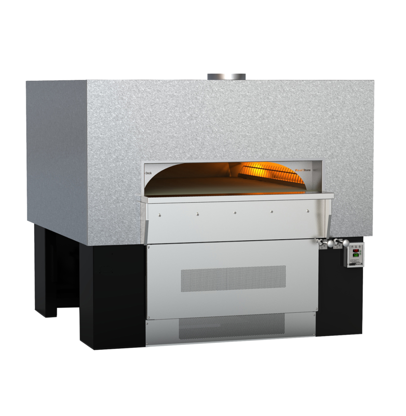For the highest production scenarios requiring huge amounts of cooking area, the Fire Deck 9690 delivers a massive 39 square feet. Available wood-fired or with radiant gas flames (or a combination), the Fire Deck 9690 features an underfloor infrared burner to maintain floor temperatures even during the heaviest production cycles, when the entire cooking surface is covered with pies