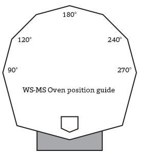 For Mountain Series ovens, the Air-Cooled Viewing Window is available with either a flat faced frame, or a curved faced frame. For WS-MS-5 (Mt. Adams) WS-MS-6 (Mt. Baker) and WS-MS-7 (Mt. Rainier) ovens, labeled positions shown on the diagram below—90°, 120°, 180°, 240° and 270°—are available for installation of a Viewing Window. Call the factory to discuss Viewing Window options for the WS-MS-4.