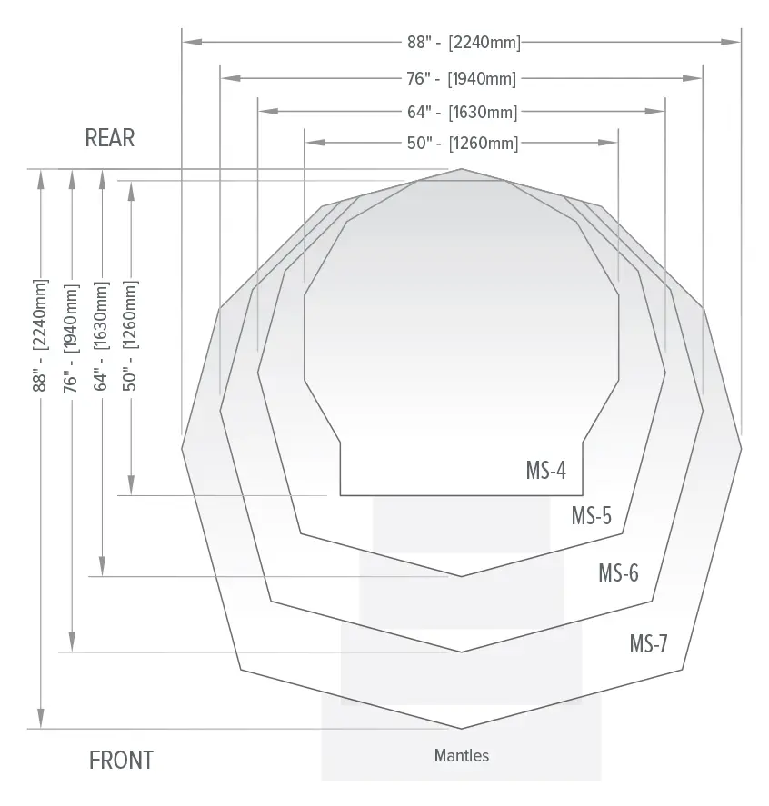 The design of the Mountain Series ovens lends itself to countless facade possibilities, and we offer a large assortment of optional Facade Extensions to help—reducing construction complexity to get you cooking sooner. Our facade tutorial document presents a sampling of installation configurations, including flat, cylindrical and curved walls, hood or direct connect venting, optional doorways, viewing windows, service panels, storage box extensions and mantels (see renderings below).