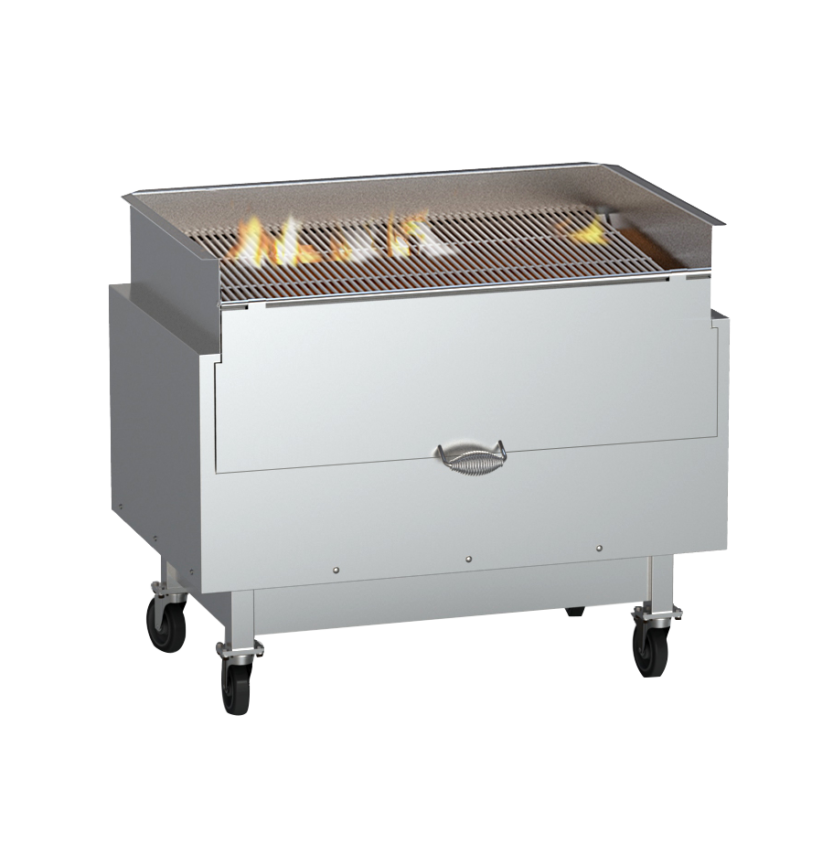 The Mt. Shuksan Charbroiler features a “heat sink” style firebox; cast from our dense, durable high-temperature ceramic and is contained within a heavy-duty, insulated, stainless steel cabinet. A relatively small amount of fuel (seasoned hardwood or hardwood charcoal) will keep the entire firebox saturated with heat, which is evenly radiated up to the grill surface.