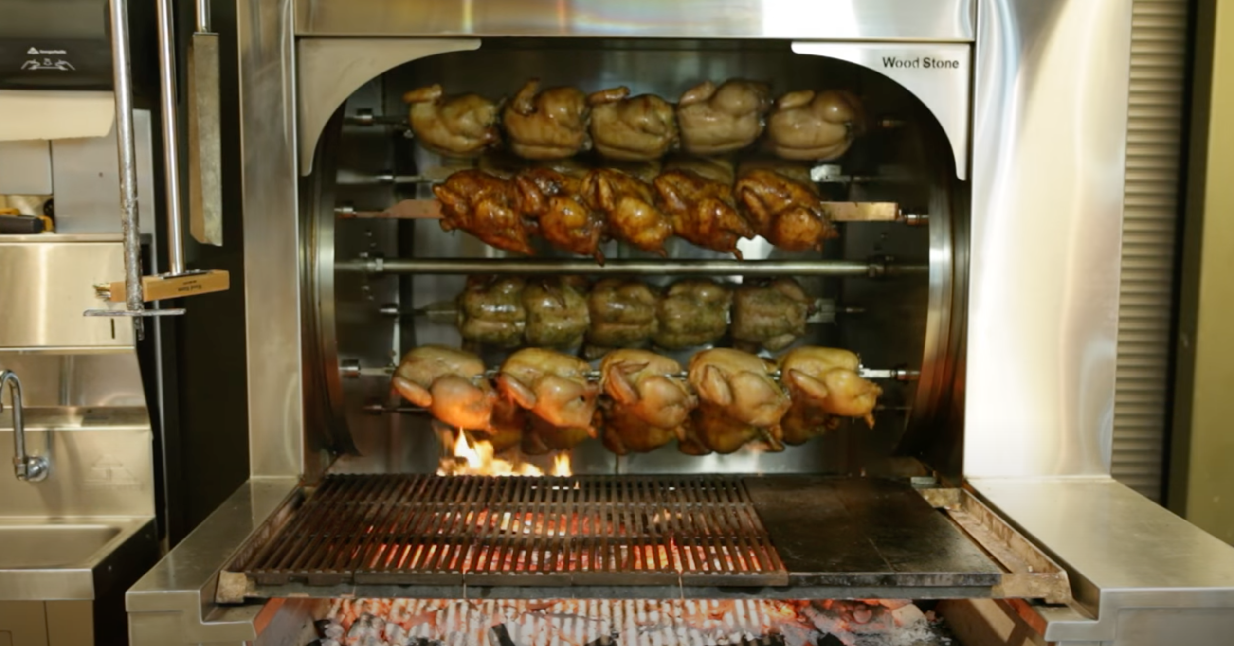 Watch our Mt. Olympus solid-fuel rotisserie with broiler in action.