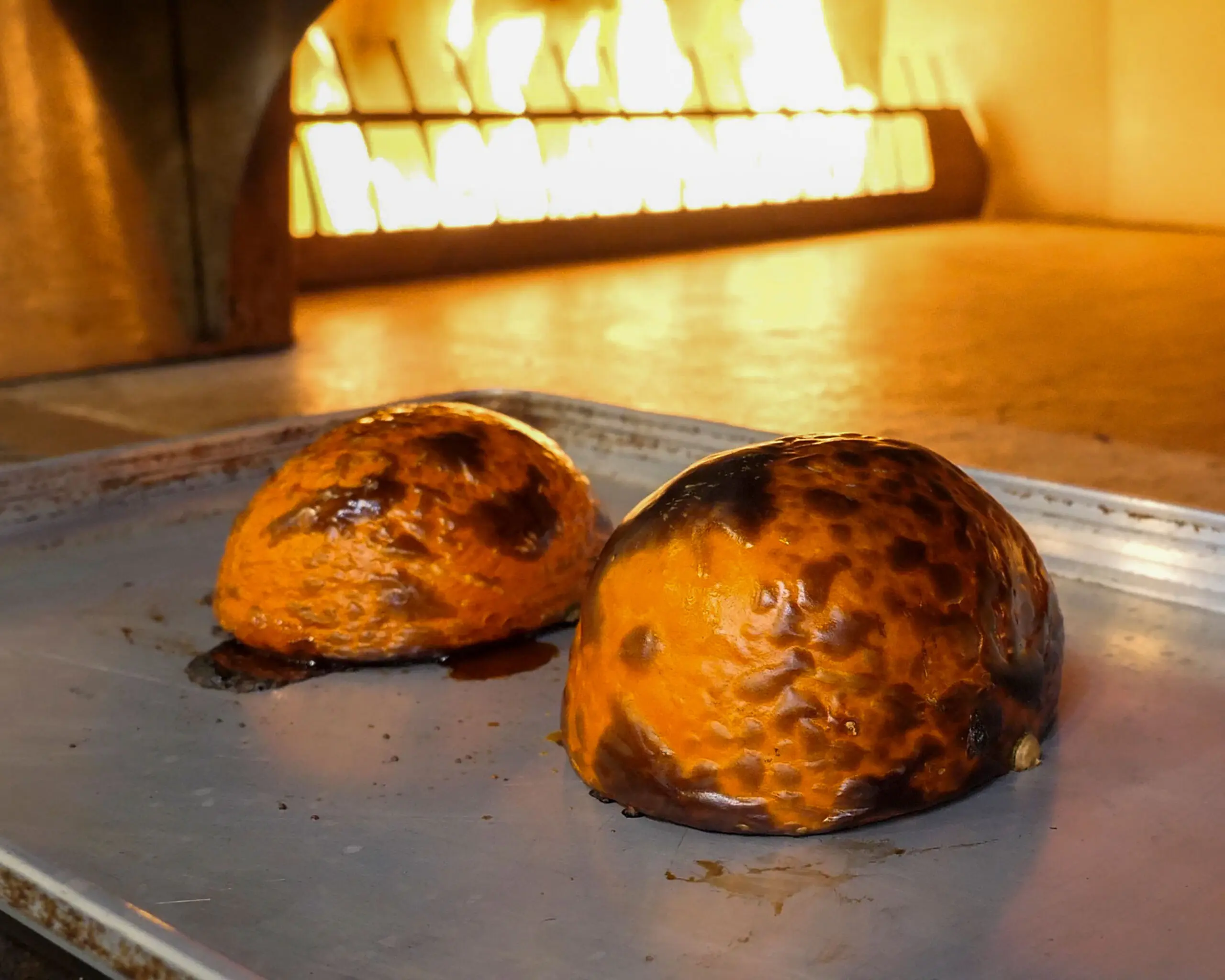 Place the pizza next to the flame, set to 4, and cook for 6 minutes, rotating once, or until the crust and top are done.